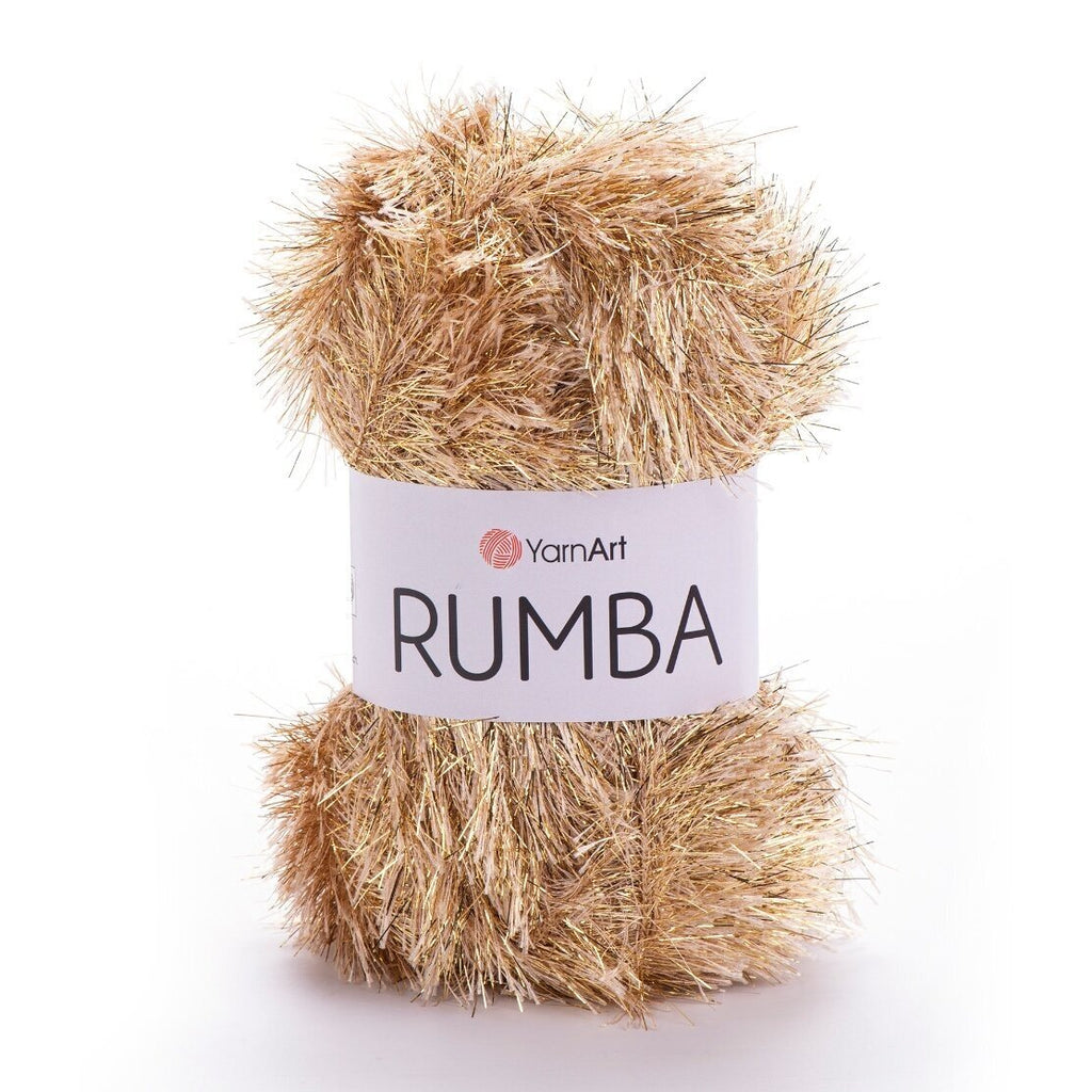 YarnArt Rumba is a lively, textured yarn made of 80% polyester and 20% metallic fibers. The metallic threads add a hint of shimmer, while the polyester base delivers durability and easy care. With approximately 160 m (175 yds) per 100 g skein, it’s designed for creating statement accessories and decorative elements. :contentReference[oaicite:1]{index=1}